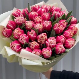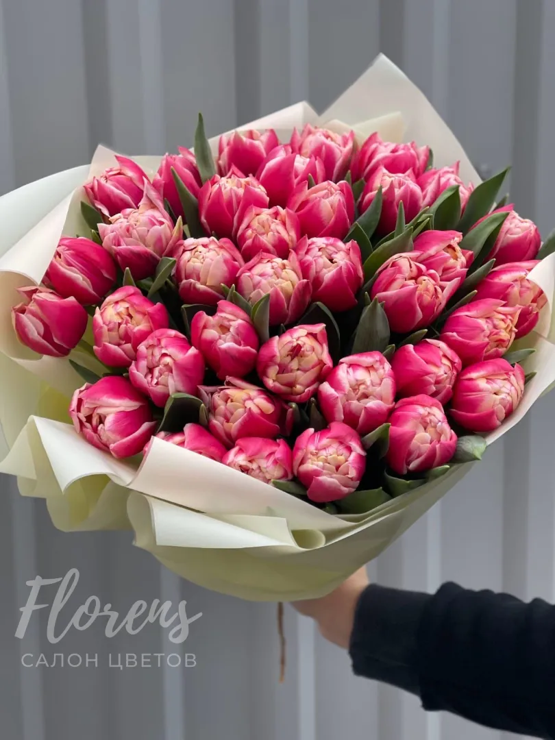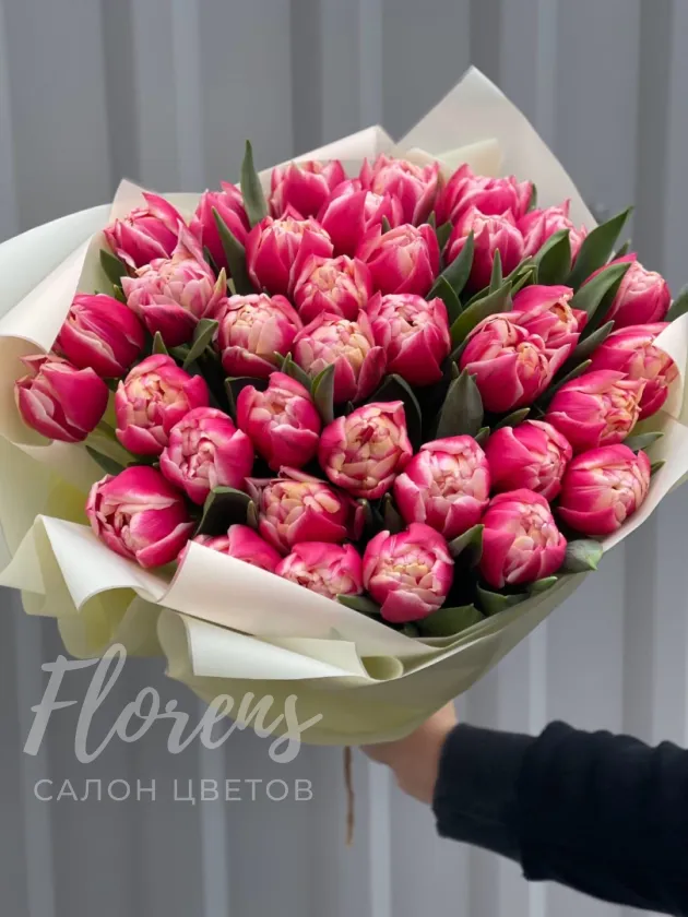 Букет из пионовидных тюльпанов 41шт в оформлении