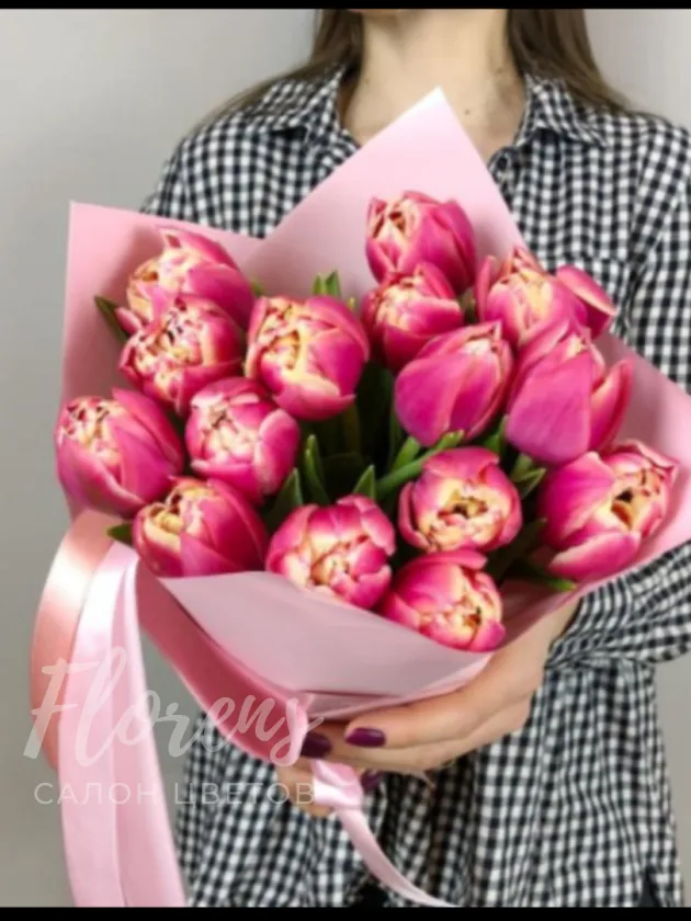 Букет из пионовидных тюльпанов 15шт в упаковке